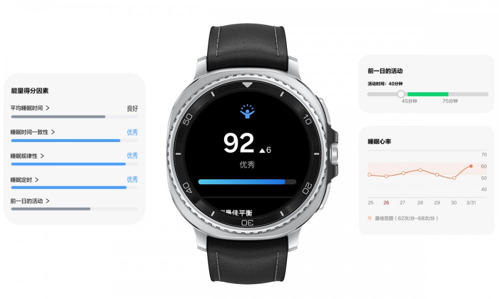 针对假期出游时常见的疲劳积累,三星Galaxy Watch8系列还支持解析运动数据、睡眠模式与夜间心率数据,从而以每日预报的形式生成能量得分。根据这项分数,我们可以更科学地安排行程:例如在得分较高时可以在景点里多逛逛,或者多跑几个想去的地方打卡;而如果能量得分较低,就意味着身体可能已经“燃尽”,此时更需要在当天的行程中适当增加休息频率,并早点回酒店休息,以免在第二天“累上加累”。