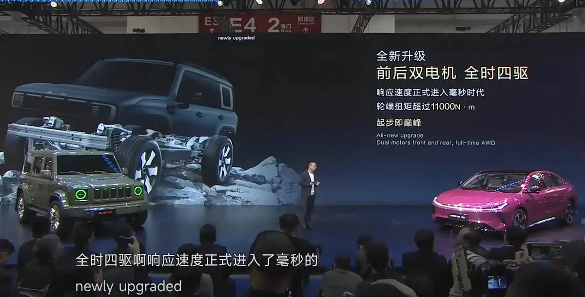 智能化配置方面,新车支持透明底盘和540度全景影像功能,帮助驾驶者清晰掌握车辆周围环境。同时配备L2级辅助驾驶系统,涵盖自适应巡航、车道保持等功能,为出行提供全方位安全保障。动力系统采用前后双电机布局,匹配全时四驱系统,兼顾城市通勤与越野场景需求,展现出强大的全地形适应能力。