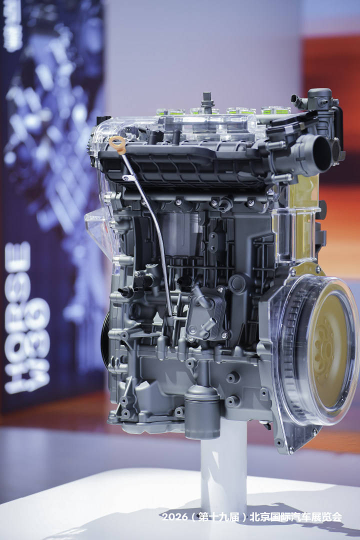高效混动技术展区则呈现出更贴近市场的技术转化成果。最高量产热效率达48.41%的HORSE B20极效防水混动发动机,通过材料科学与燃烧控制的双重突破,将内燃机效率推向新高度。与之配套的HORSE DHTS超混平台及首款产品DHTS210,与已搭载于极氪9X、极氪8X的HORSE DHT290智能电驱形成技术梯队,覆盖从经济型到高端市场的全谱系需求。