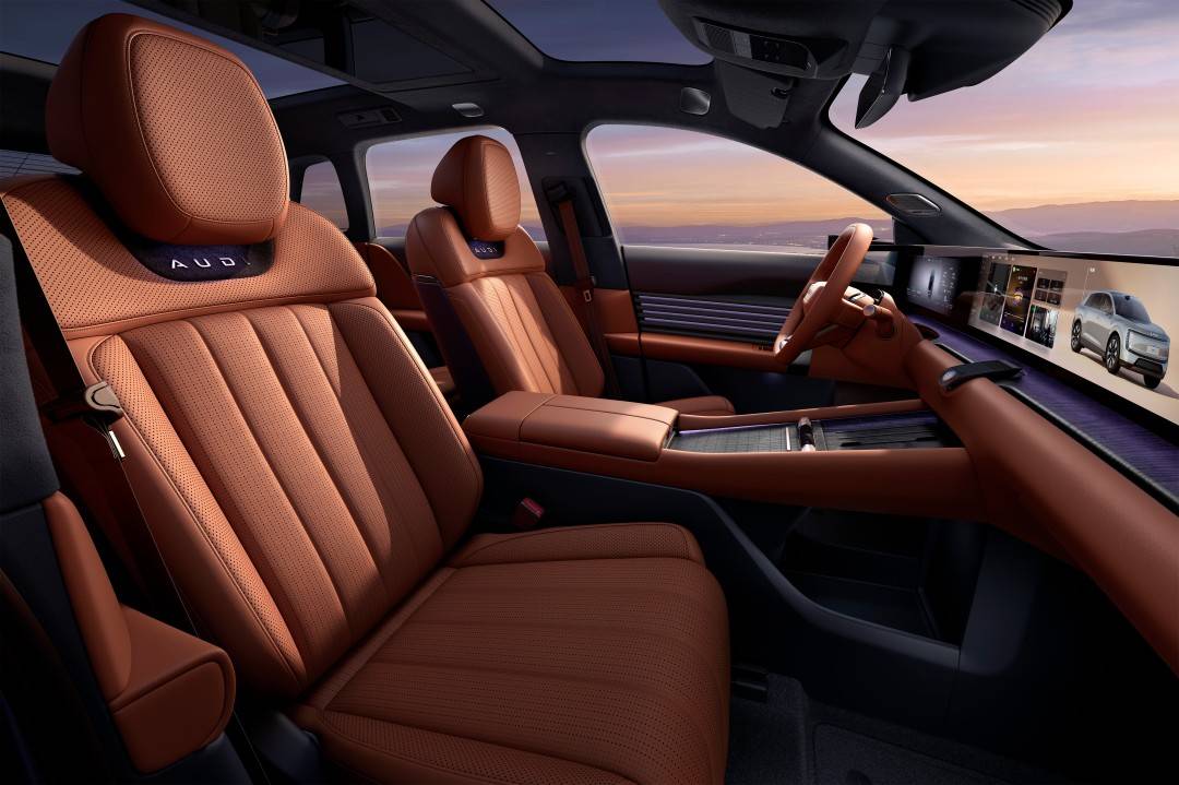 车内空间以“奥迪智慧客厅”为理念,通过AI技术重构智能交互场景,覆盖休憩、娱乐、办公等多维度需求。零重力座椅、BOSE Performance悦听零重力副驾(集成电动脚托与专属扬声器)以及后排多角度电动调节座椅,大幅提升乘坐舒适性。座舱获得OEKO-TEX悦享母婴级健康认证,采用OpenPore北美天然实木、FeinNappa小牛皮与Articite麂皮绒等高端材质,搭配双段式智能调光天幕,兼顾质感与私密性。21.4英寸QD Mini LED星空屏与中控屏支持独立内容播放,构建沉浸式多屏交互生态。全新奥迪助手2.0依托AI大模型,实现多意图识别与跨轮次上下文关联,可根据行车场景动态调整语调语速,提供拟人化智能交互体验。