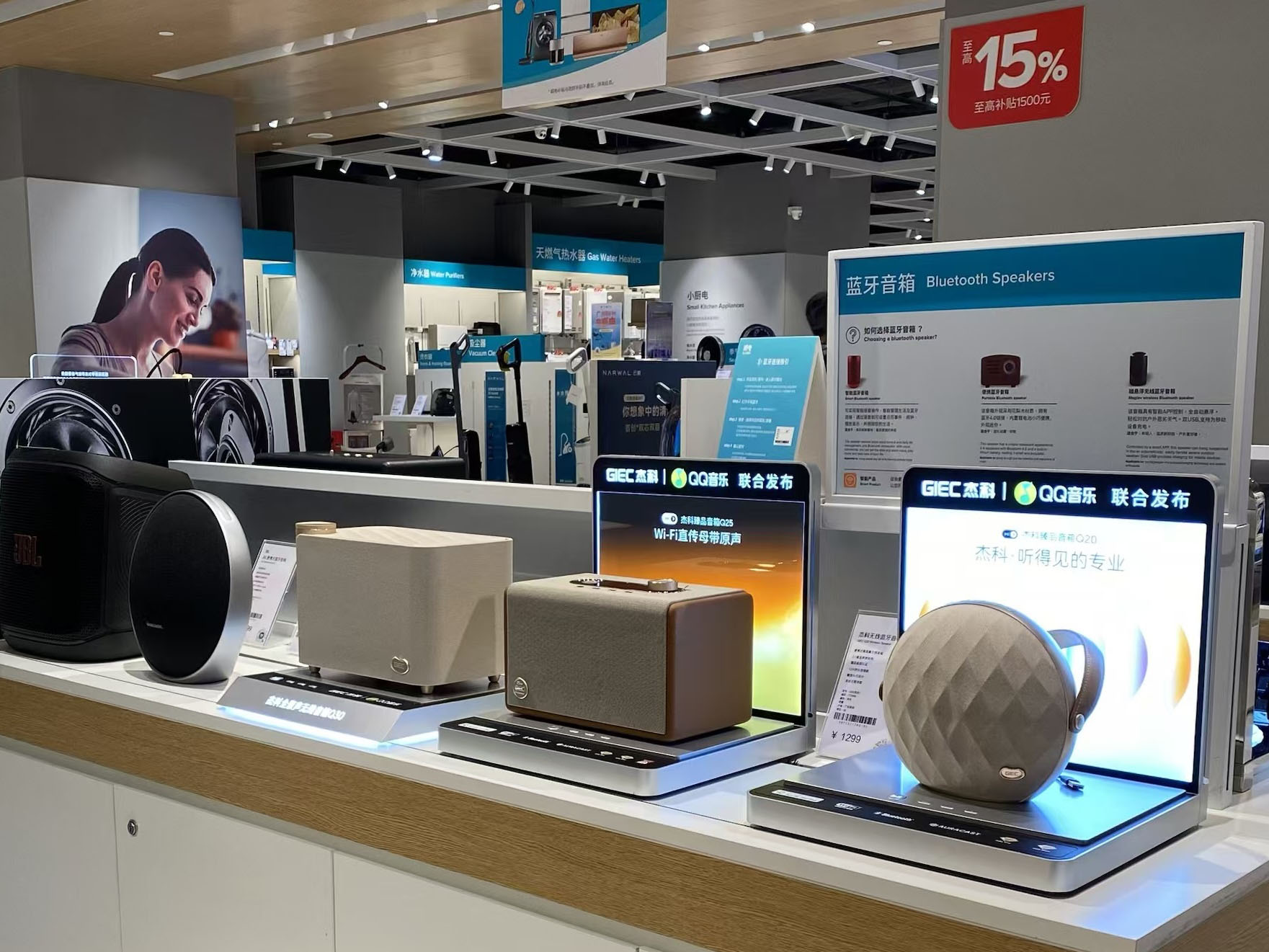 作为国内高端3C生活方式零售的标杆,顺电门店均位于万象城、太古汇、国贸等顶级商圈,客群精准聚焦追求科技美学与品质生活的高净值消费者。杰科入驻顺电,意味着成功打入高端家庭影音消费的核心场景,与Bose、Sonos等国际品牌同台陈列,获得专业渠道的权威背书。