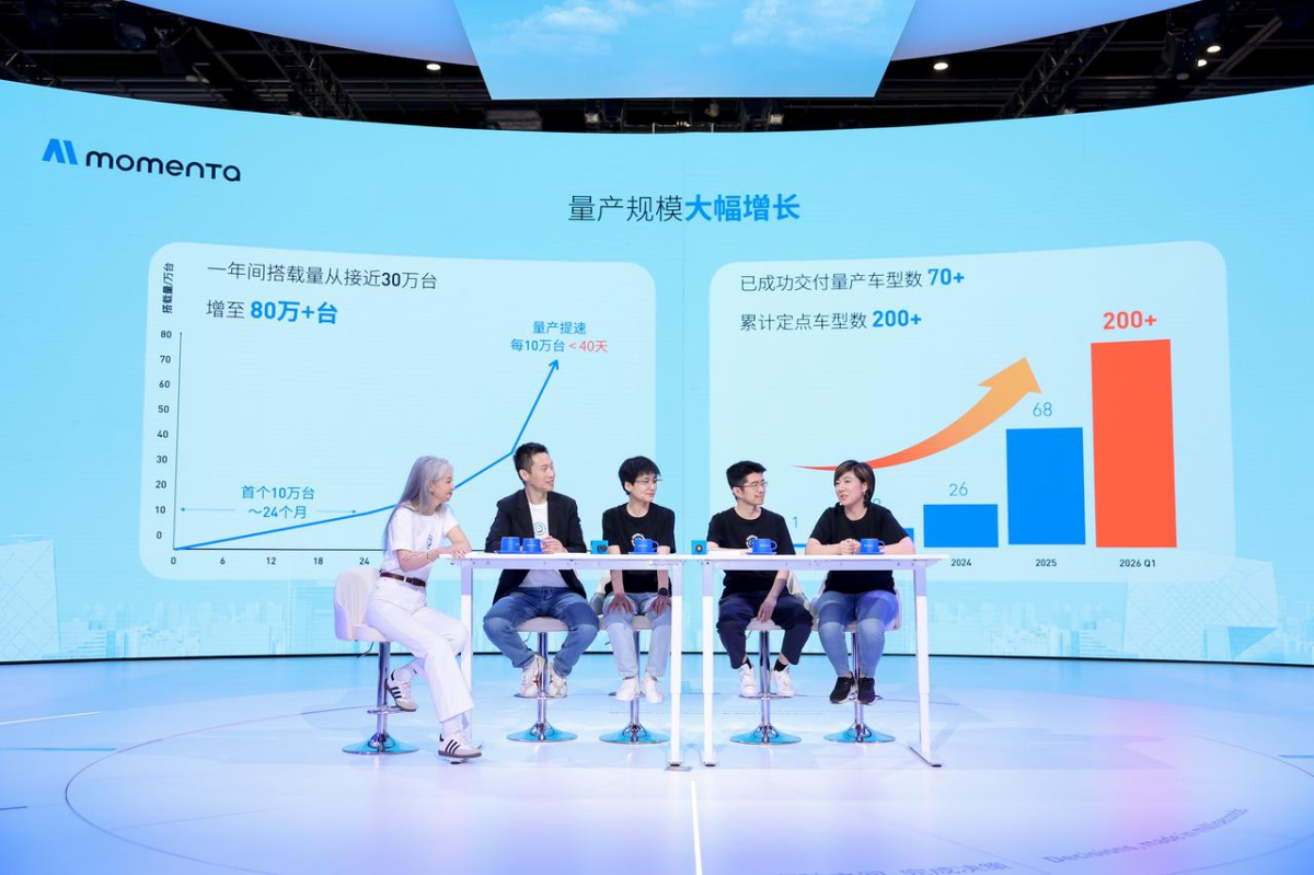 Momenta合伙人、市场商务SVP孙环介绍,搭载Momenta系统的量产车辆规模已超过80万台。量产速度实现质的跨越:2022年首个10万台量产耗时24个月,而今最快不到40天即可完成10万台交付,飞轮效应正在加速形成。