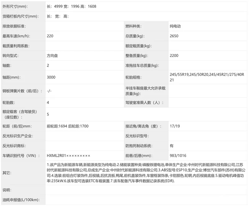 工信部最新申报目录中,小米YU7入门级车型正式亮相。这款中大型纯电SUV在保持原有车身尺寸的同时,通过技术优化实现了115kg的减重,整备质量降至2200kg。新车长宽高分别为4999mm×1996mm×1608mm,轴距达3000mm,与现款标准版保持一致。