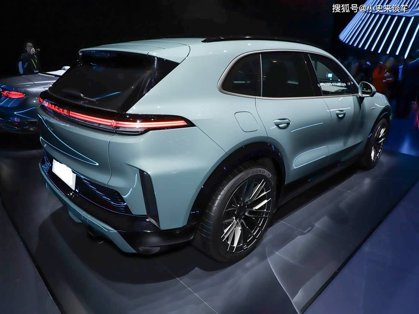 车身设计延续保时捷SUV家族的黄金比例,长宽高达到4985×1980×1674mm,轴距较燃油版加长130mm至3020mm,后排腿部空间实现质的飞跃。侧面线条以贯穿式腰线为核心,搭配宽体侧裙与车门筋线,勾勒出蓄势待发的力量感。22英寸密辐轮圈与碳陶制动系统强化运动属性,主动式侧风刀在车速超55km/h时自动升起,配合Coupé车型的溜背造型,将空气动力学效率提升至新高度。车尾采用扁平化贯穿式LED尾灯组,中央"PORSCHE"标识可同步点亮,搭配扩散器造型后包围与双边装饰性排气口,营造出兼具未来感与运动气息的视觉效果。后备厢容积达781-1588L,支持电动放倒后排座椅功能。