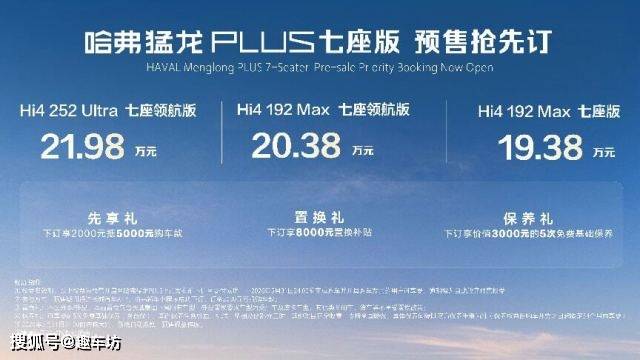 以“热爱自由 活出棱角”为核心理念,哈弗在此次车展上带来了哈弗猛龙PLUS等重磅车型,引发了广泛关注。作为哈弗品牌的新力作,猛龙PLUS不仅在设计上独具特色,更在性能和功能上满足了用户多样化的需求。车展现场,哈弗猛龙PLUS七座版正式开启预售,并公布了官方价格:Hi4 192 Max 七座版售价19.38万元,Hi4 192 Max 七座领航版售价20.38万元,Hi4 252 Ultra 七座领航版售价21.98万元。同时,用户预订还可享受多项优惠权益,包括2000元抵5000元购车款、8000元置换补贴以及价值3000元的5次免费基础保养。