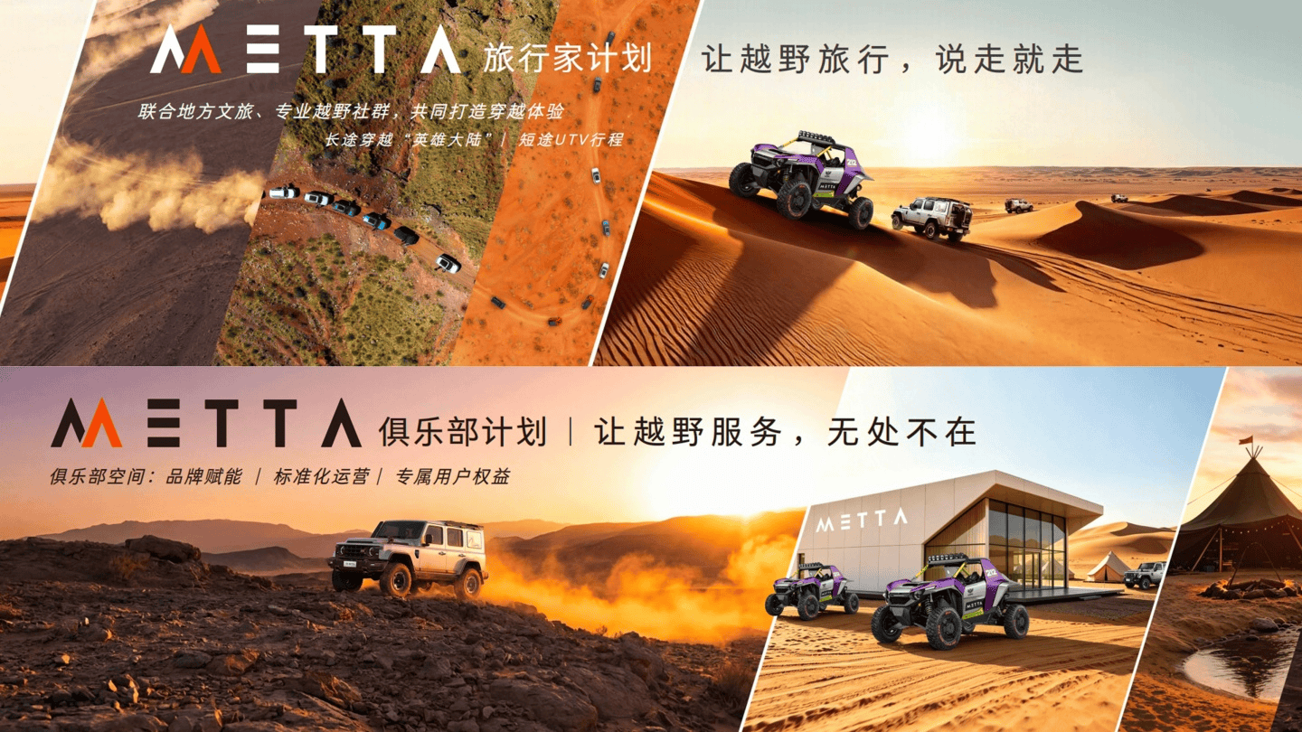 METTA系列的核心在于“人人皆可越野”的理念。为了实现这一目标,212越野车特别邀请了达喀尔冠军韩魏参与车辆的调校工作,确保每一款车型都能拥有专业级的性能表现。同时,品牌还推出了“METTA旅行家”与“METTA俱乐部”两大项目,通过与文旅机构和社群组织的合作,为越野爱好者们打造了一系列穿越路线和丰富的活动体验,进一步降低了越野的门槛,让更多人能够享受到越野带来的乐趣。