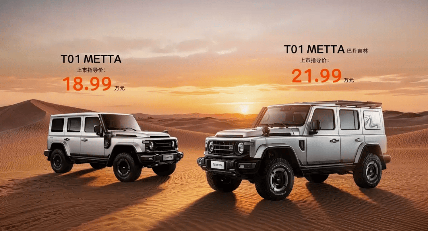 在备受瞩目的北京车展上,212越野车品牌重磅推出其首个越野生态系列——METTA,并携两款全新车型T01 METTA与T01 METTA巴丹吉林完成全球首秀。其中,T01 METTA官方指导价为18.99万元,T01 METTA巴丹吉林则定价21.99万元,为越野爱好者提供了更具性价比的选择。