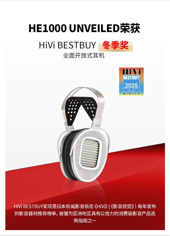 行业认可:作为品牌标杆级开放式旗舰耳机,机型综合实力经过专业认证,斩获日本权威影音杂志《HiVi》(《影音视觉》)“HiVi BESTBUY 冬季奖”(数据源自官网),该奖项为亚洲高端影音产品核心参考标准,充分印证产品专业音质与工艺品质。