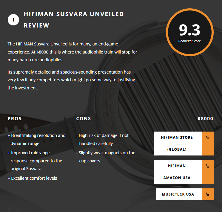 行业认可:多重黑科技协同作用,使得SUSVARA UNVEILED不仅赢得了Headfonics 消费者9.3分的超高评分,更荣膺日本权威视听奖项VGP2026金賞等多项行业大奖(数据源自官网)。