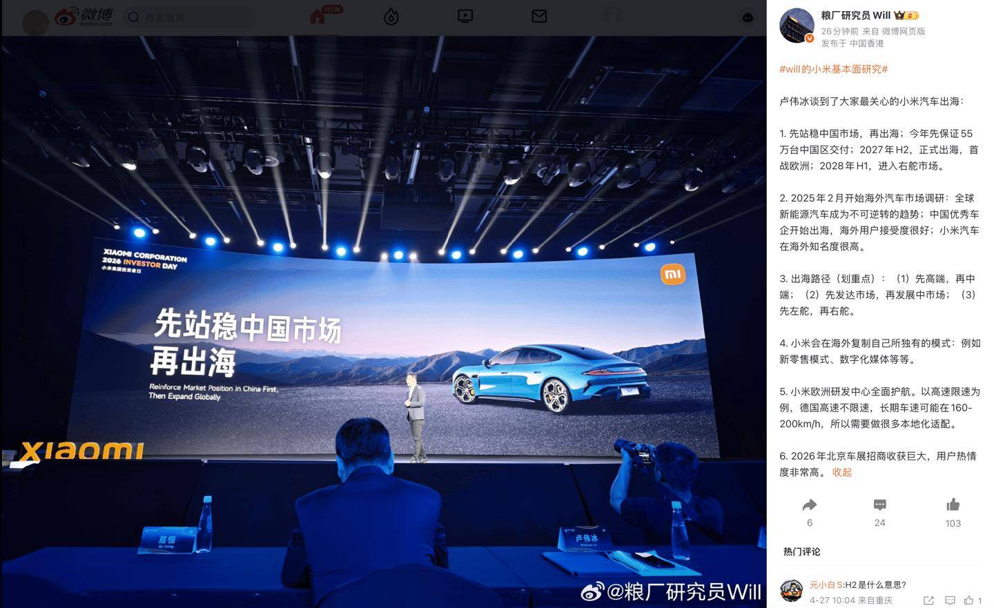 人才储备方面,小米本月正式任命原特斯拉中欧地区交付运营高级经理迪特·洛伦茨(Dieter Lorenz)担任欧洲交付与物流负责人,显示其在供应链管理领域的国际化布局。值得关注的是,在2026年北京车展期间,小米汽车展台获得超高关注度,招商工作取得突破性进展,这为后续全球化运营积累了宝贵经验。此前卢伟冰曾在德国试驾小米SU7车型,为2027年进军欧洲市场进行实地考察,此次人事任命与市场调研的同步推进,标志着小米汽车的出海战略进入实质性执行阶段。