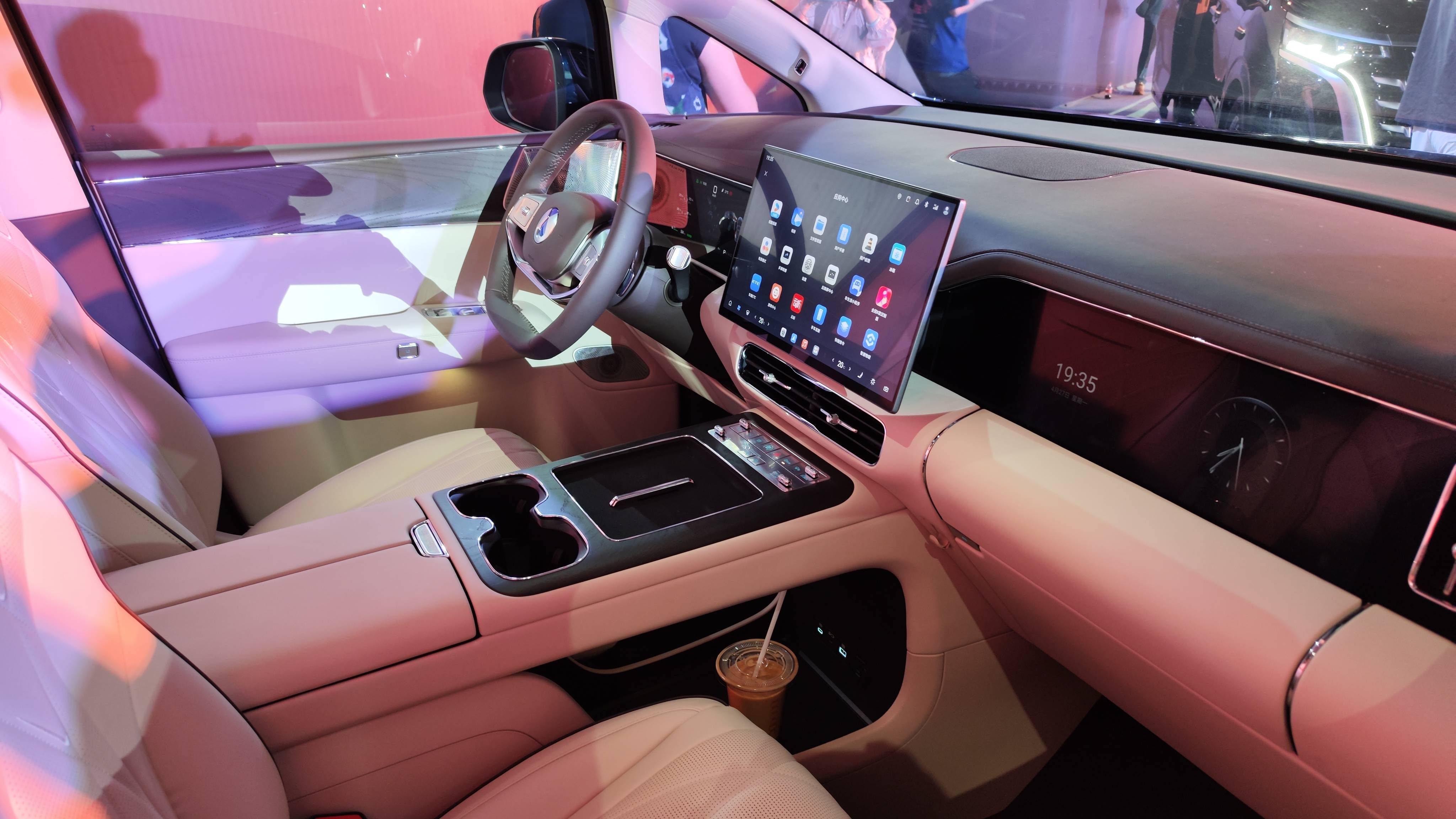 内饰方面,第二代腾势D9的变化更为显著。新车采用了横平竖直的T字形中控台布局,取消了传统的电子挡杆,转而采用电子怀挡设计,使得前排空间更加整洁有序。空调出风口下方保留了部分实体按键,方便驾驶者操作。在配置上,新车全系标配了主驾电动门、双50W无线快充、7.5L智能冷暖箱以及1.1㎡电动遮阳天幕,为乘客提供了更加舒适便捷的驾乘体验。