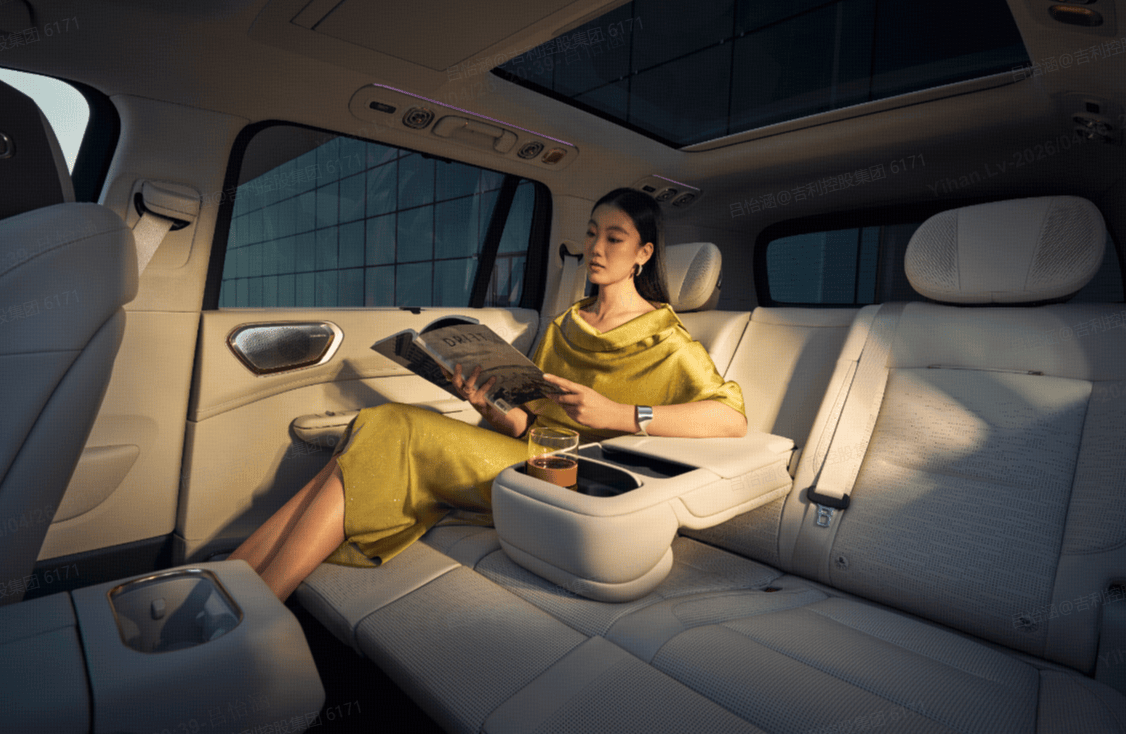 空间设计成为领克900的核心亮点。第二排座椅宽度达1350毫米,两侧座椅配备加热、通风及16点按摩功能,中间座椅同样支持加热,横向空间优势显著。座椅支持最大150°仰角调节,搭配电动腿托,形成近乎平躺的乘坐姿态。针对家庭出行场景,新车创新开发“童梦空间”模式,二排腿托抬起后可形成1.35米×0.85米的儿童床,满足户外休憩需求。后备箱标准容积1030升,二排前移后扩展至1215升,纵深1350毫米的尺寸可容纳山地车等大件物品,全车47处储物空间与80升下沉式储物格进一步强化实用性。车辆保留天地门设计,配备2吨拖挂资质、6.6kW外放电、220V电源接口及9升车载冷暖冰箱,构建全场景出行生态。