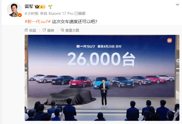 小米汽车近日公布了新一代SU7的交付成绩单,引发市场广泛关注。雷军在社交平台发文称:“这次交车速度还可以吧?”并同步披露了具体数据。