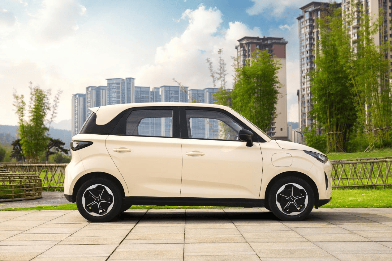 外观设计突破传统微型车方正造型,采用“酷感灵动”设计语言,车身线条圆润流畅。前脸配备飞翼之瞳自动感应大灯,支持自动开闭与延时关闭;尾部翼展式尾灯搭配小型运动尾翼,官方数据显示可降低0.03cd风阻。车身提供香草米、海盐蓝、糯米白三款低饱和度配色,标配165/65 R15钢轮毂,可选装15英寸幸运四叶草铝合金轮毂。