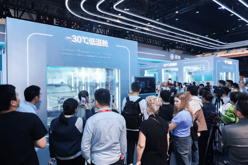车展现场,比亚迪第二代刀片电池与闪充技术组成的“闪充矩阵”引发关注。该技术实现“常温5分钟充好、9分钟充饱,低温零下30度仅多3分钟”的突破,充电效率媲美燃油车加油,有效缓解用户补能焦虑。截至4月23日,比亚迪已在全国311座城市建成5499座闪充站,构建起覆盖广泛的极速充电网络。