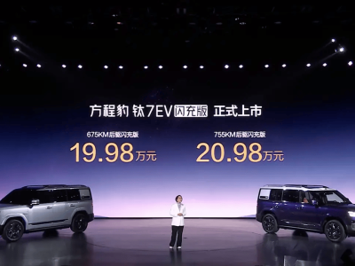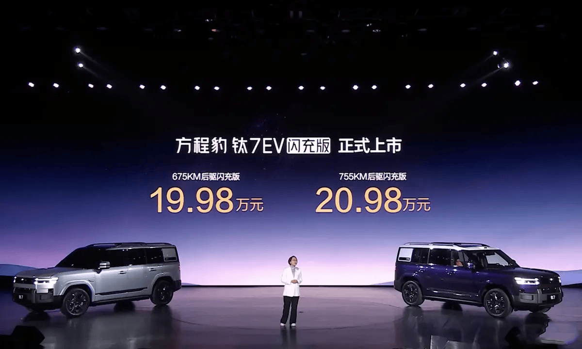 方程豹汽车旗下全新车型钛7 EV闪充版正式开启市场销售,此次共推出两款配置版本,官方指导价区间为19.98万元至20.98万元。作为品牌首款搭载第二代刀片电池的纯电SUV,新车在续航能力与充电效率方面实现突破,CLTC工况下最长续航里程达755公里,常温条件下10%至80%电量补充仅需8分钟。