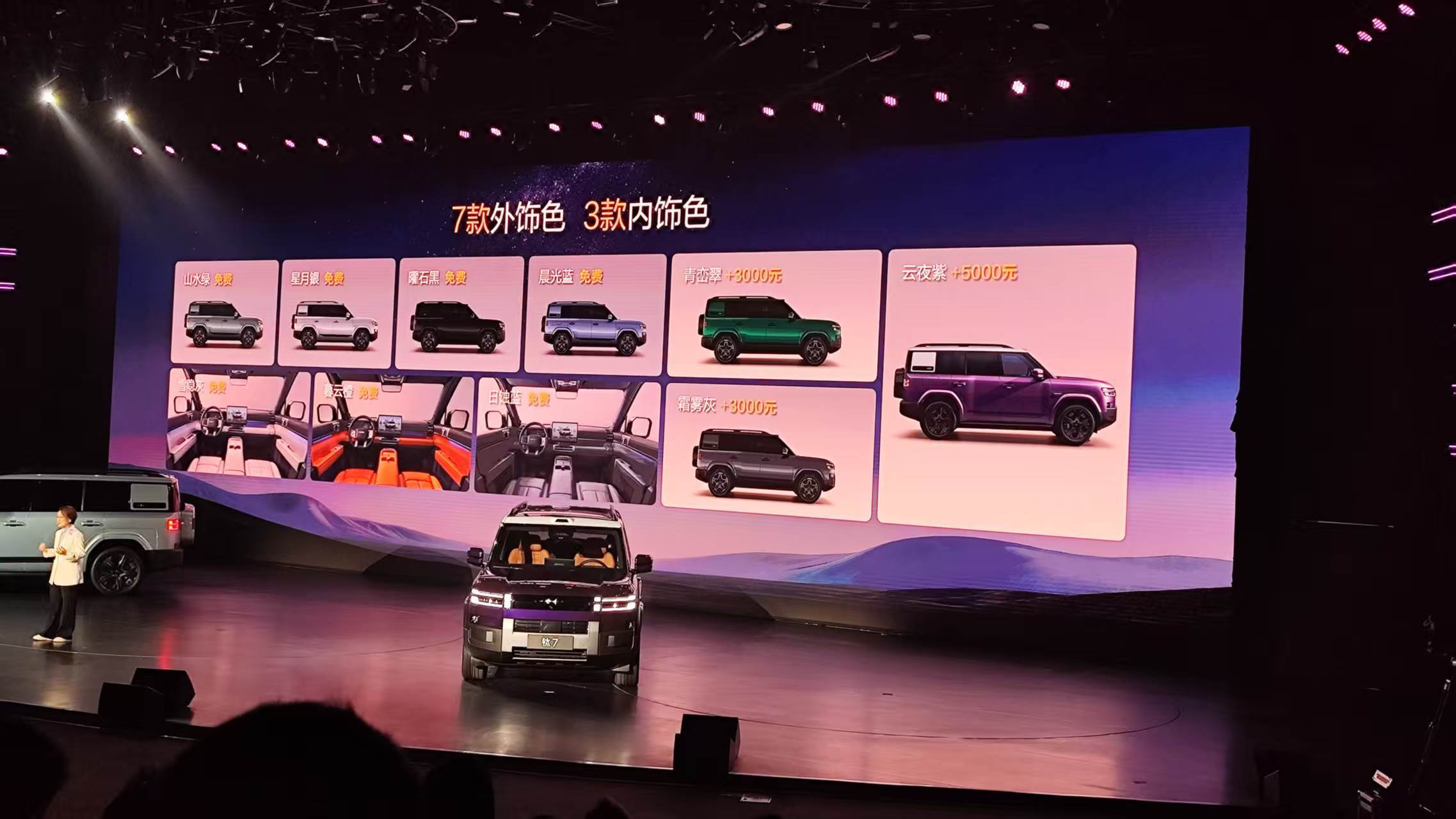 外观设计延续品牌标志性的"钛能美学",方正硬朗的车身轮廓搭配双层贯穿式前大灯组,车顶集成激光雷达模块。车身尺寸达到4999×1995×1865毫米,轴距2920毫米,接近角24度、离去角25度的设定兼顾城市通勤与轻度越野需求。车尾采用双L型立体尾灯设计,外挂式储物箱与侧开式尾门增强实用性,提供暮云橙、雪隐灰等十种车身配色方案,并支持个性化潮改套件选装。
