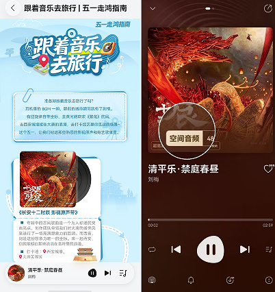 在花瓣地图“跟着音乐去旅行”活动页里不仅能打开一首与目的地相关的歌曲,还能点击“前往探索”按钮,直接获取音乐相关的旅行指南——不用再到处搜“某城市哪里好玩”。抵达古都西安,先打开华为音乐听《长安十二时辰》原声带。点亮超高清音频,古朴的旋律细腻响起时,花瓣地图已为你规划好曲江池、古城墙的路线。边走边听,盛唐的风好像就在耳边。奔赴上海,播放《繁花》歌单,点亮华为音乐空间音频,沉浸在复古的爵士旋律里,跟着花瓣地图导航去和平饭店、外滩、老弄堂。老上海的摩登风情,不靠想象,靠脚步。