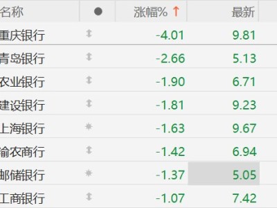 A股银行股普跌,重庆银行跌4%