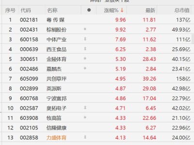 A股体育概念股集体上涨,中体产业涨超7%