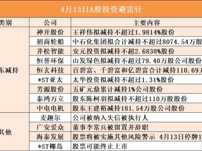 4月13日A股投资避雷针︱*ST椰岛:股票可能终止上市;广安爱众:董事李常兵被留置并辞职