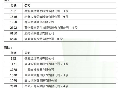 恒生中国高股息率指数公布季检结果:特步、万物云等获纳入