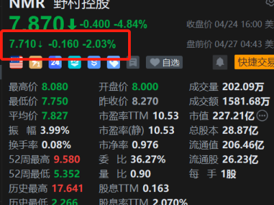 美股异动|野村盘前续跌2% 年度业绩创新高但Q4业绩低于预期