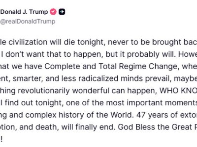 特朗普:今晚整个伊朗文明将会消亡