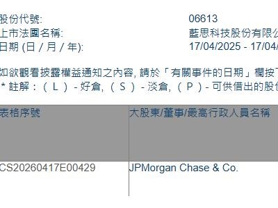蓝思科技(06613.HK)获摩根大通增持66.85万股