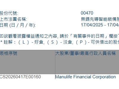 先导智能(00470.HK)获Manulife Financial Corporation增持9.56万股