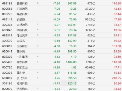 A股光纤概念股集体下跌,通光线缆跌超7%,长飞光纤跌近4%