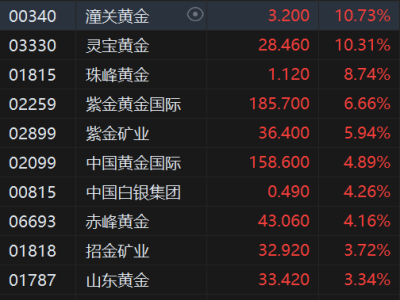 港股异动丨黄金股大幅拉升,潼关黄金、灵宝黄金涨超10%领衔,金价突破4710美元
