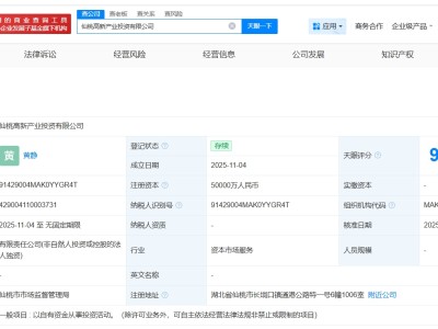 仙桃高新产业投资公司登记成立 注册资本5亿
