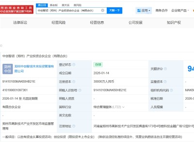 中创智领在郑州成立产业投资合伙企业 出资额3亿