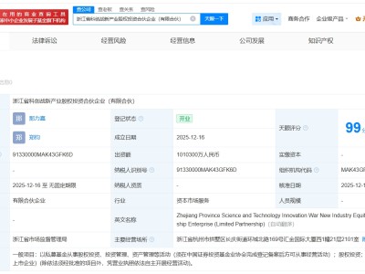 浙江省科创战新产业股权投资合伙企业登记成立 出资额101.03亿