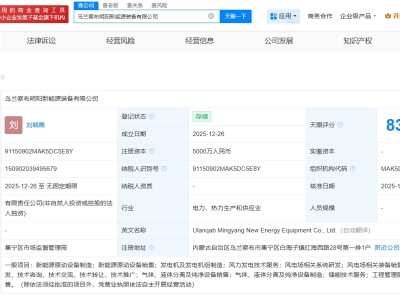 明阳智能在乌兰察布成立新能源装备公司 注册资本5000万