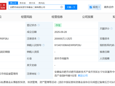 合肥市创业投资引导基金二期登记成立 注册资本20亿