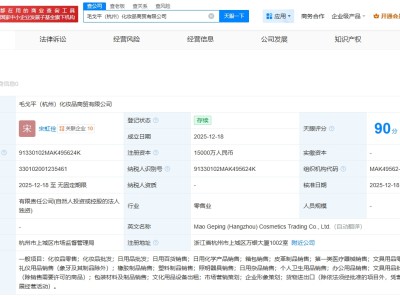 毛戈平在杭州成立化妆品商贸公司 注册资本1.5亿
