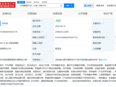 一汽奔腾国际汽车公司登记成立 注册资本2亿