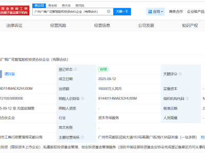 广汽集团等成立智驾股权投资合伙企业 出资额1.6亿