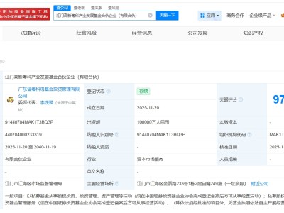 江门高新粤科产业发展基金登记成立 出资额10亿
