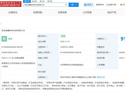 海螺材料科技在广东茂名成立新公司 注册资本1.8亿