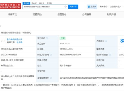歌尔集团等在潍坊成立投资合伙企业 出资额1亿