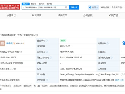 国家电投、广西能源集团在忻城成立新能源公司 注册资本1.5亿