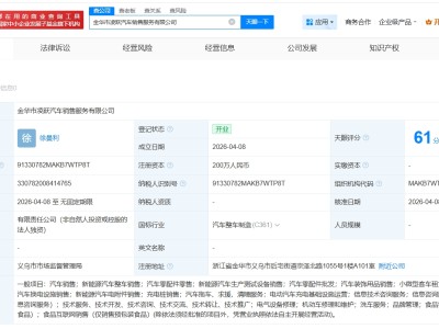 零跑汽车在金华成立新销售服务公司 注册资本200万