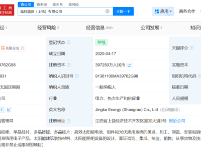 晶科能源上饶公司增资至约39.7亿 增幅13.5%