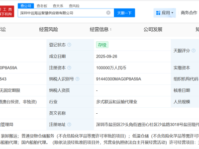中远海运等在深圳成立智慧供应链公司 注册资本